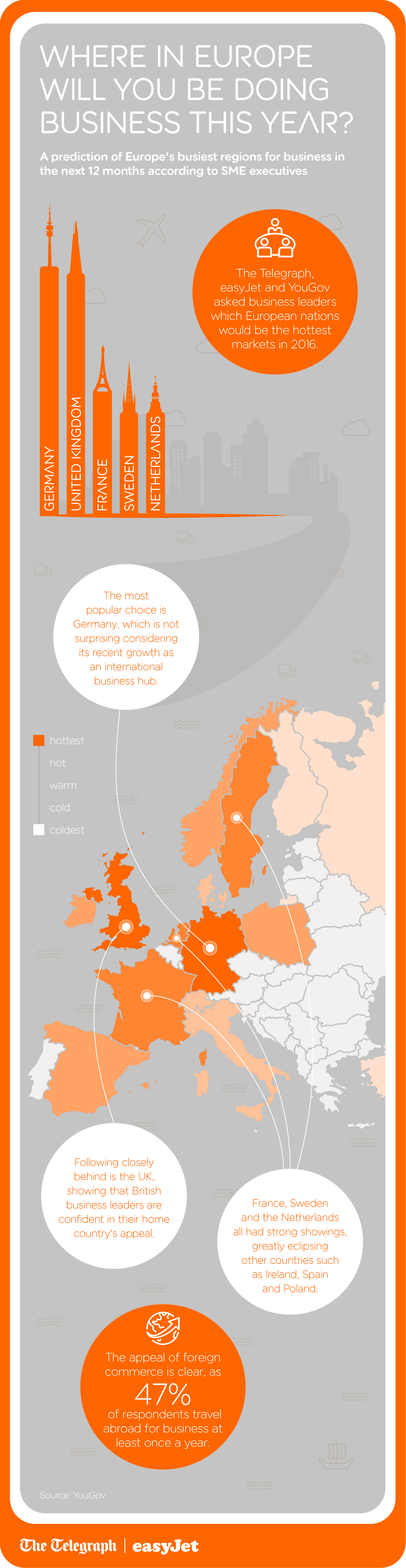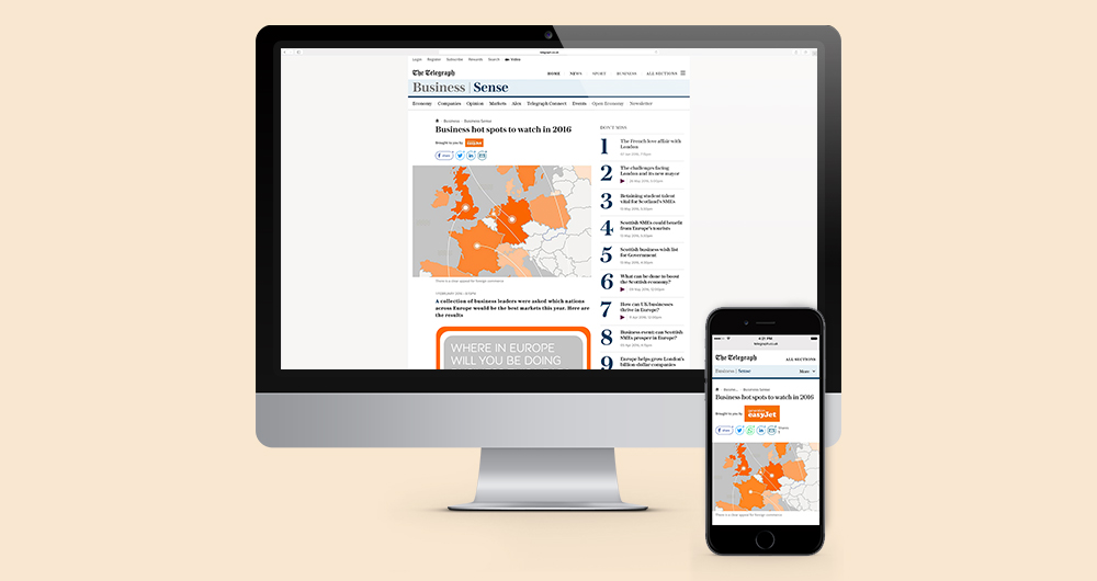ArticleWith data from YouGov, easyJet tasked Telegraph Spark to illustrate where in Europe corporations thought business would boom in 2016.