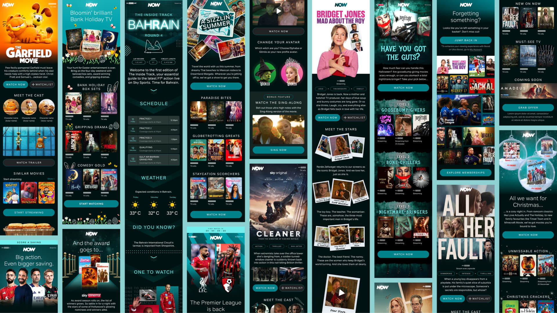 The selection below showcases a range of high-performing CRM communications, from evergreen BAU engagement to strategic winback and cross-sell lifecycles. The journey begins with my latest 2025 seasonal campaigns, transitioning back to the 2022 Christmas "Wrapping Paper" toolkit and standard BAU assets. Note a shift in visual language – specifically within the CTA styling – marking the successful transition to ‘Project Gold,’ a major brand evolution. Also featured are some custom-animated GIFs designed to drive visual interest in both hero and in-body placements.